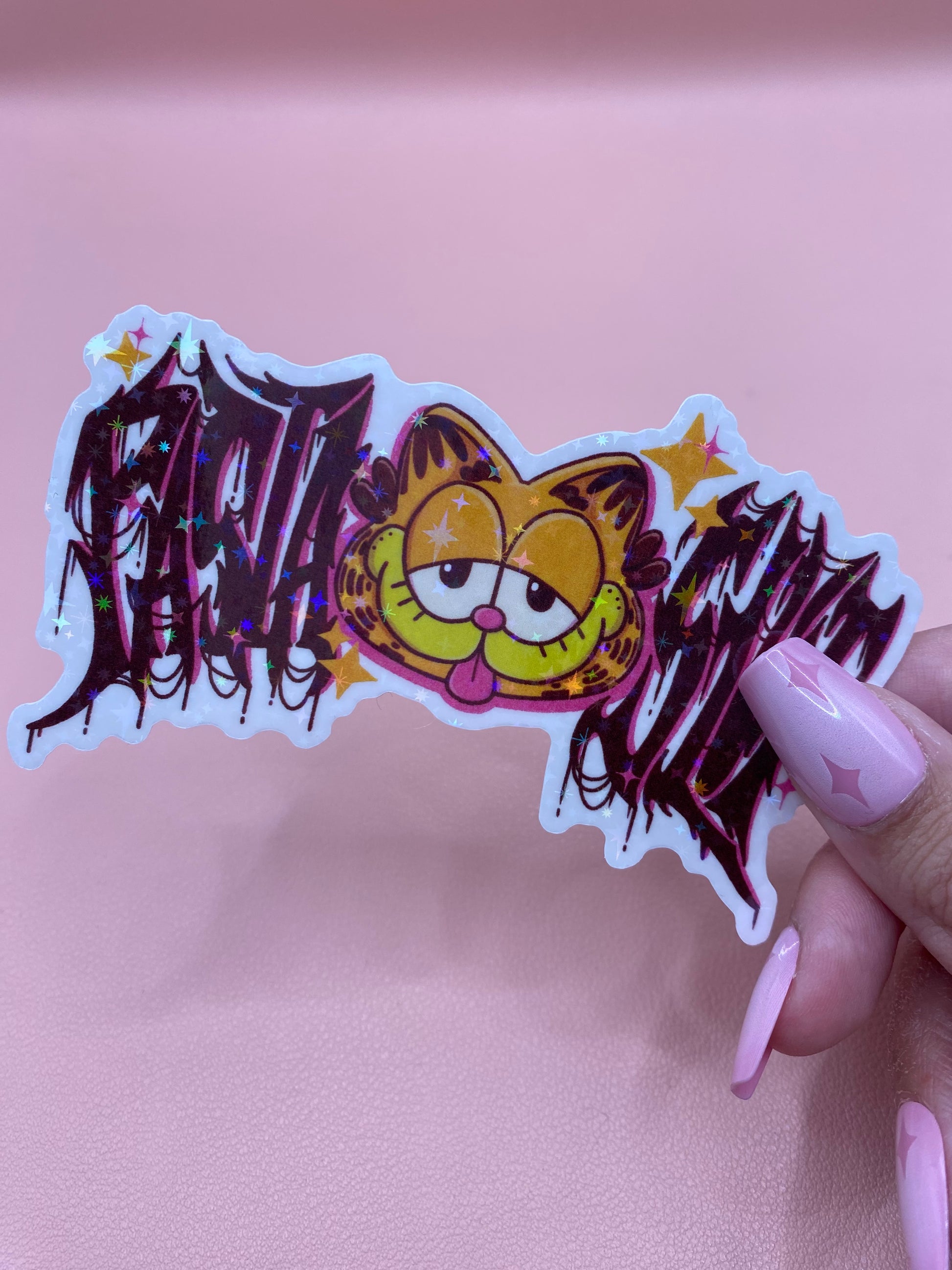 It's a transparent sticker so you can use this to decorate your pasta jar maybe. Do it. Garfield would be proud of you.